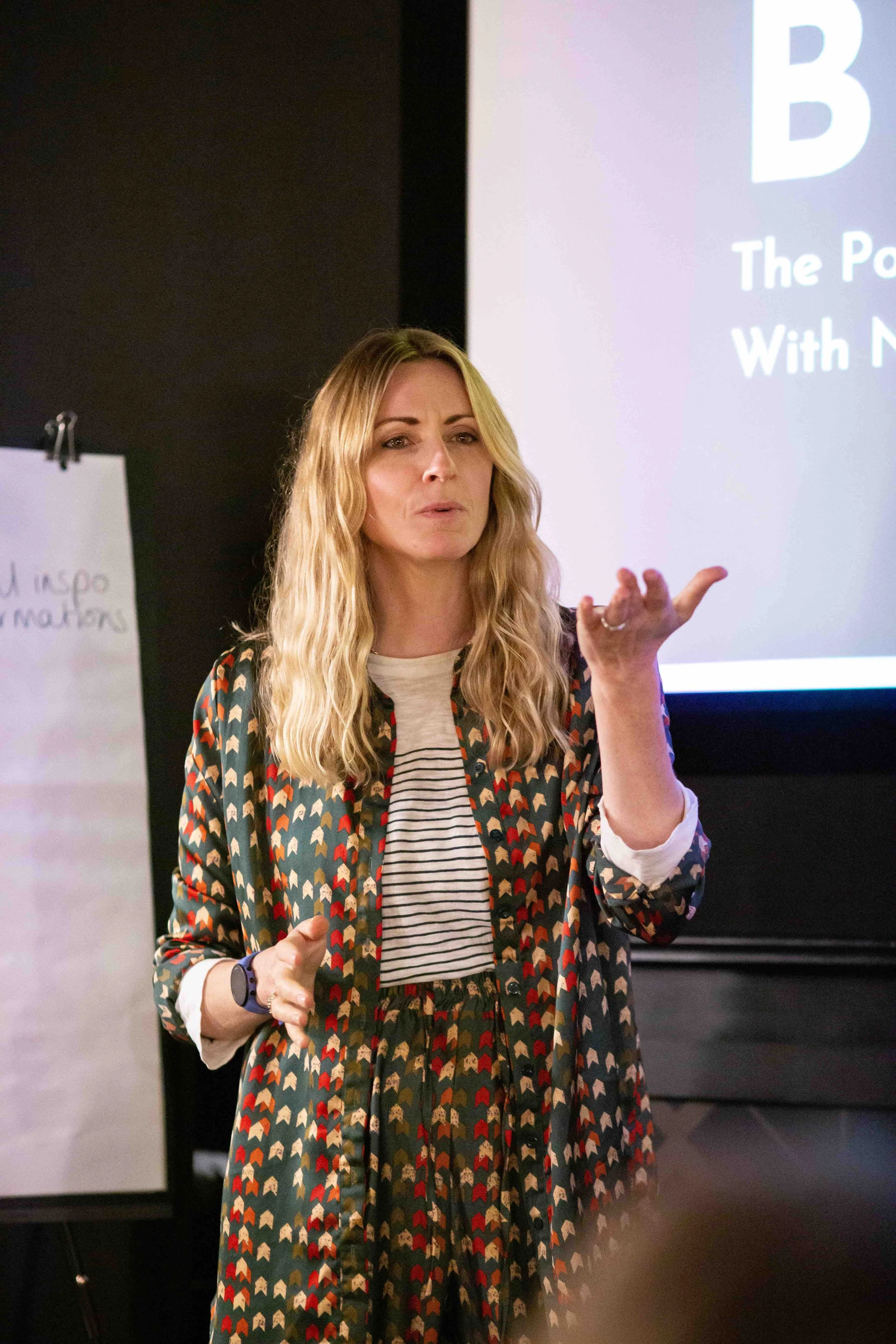 An additional photo of you, Drew and the kids could be nice here, in place of the Candid shot? I know you don’t share the kids faces, but if you have a nice photo where they are looking away? Just something the reenforce the motherhood/work “I totally get it” message.